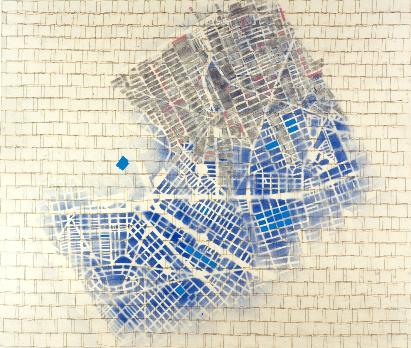 브래드포드는 추상화한 지도 위에 소외된 지역 공동체와 인간 존재에 대한 애정을 심어 새로운 풍경화를 만들어냅니다.