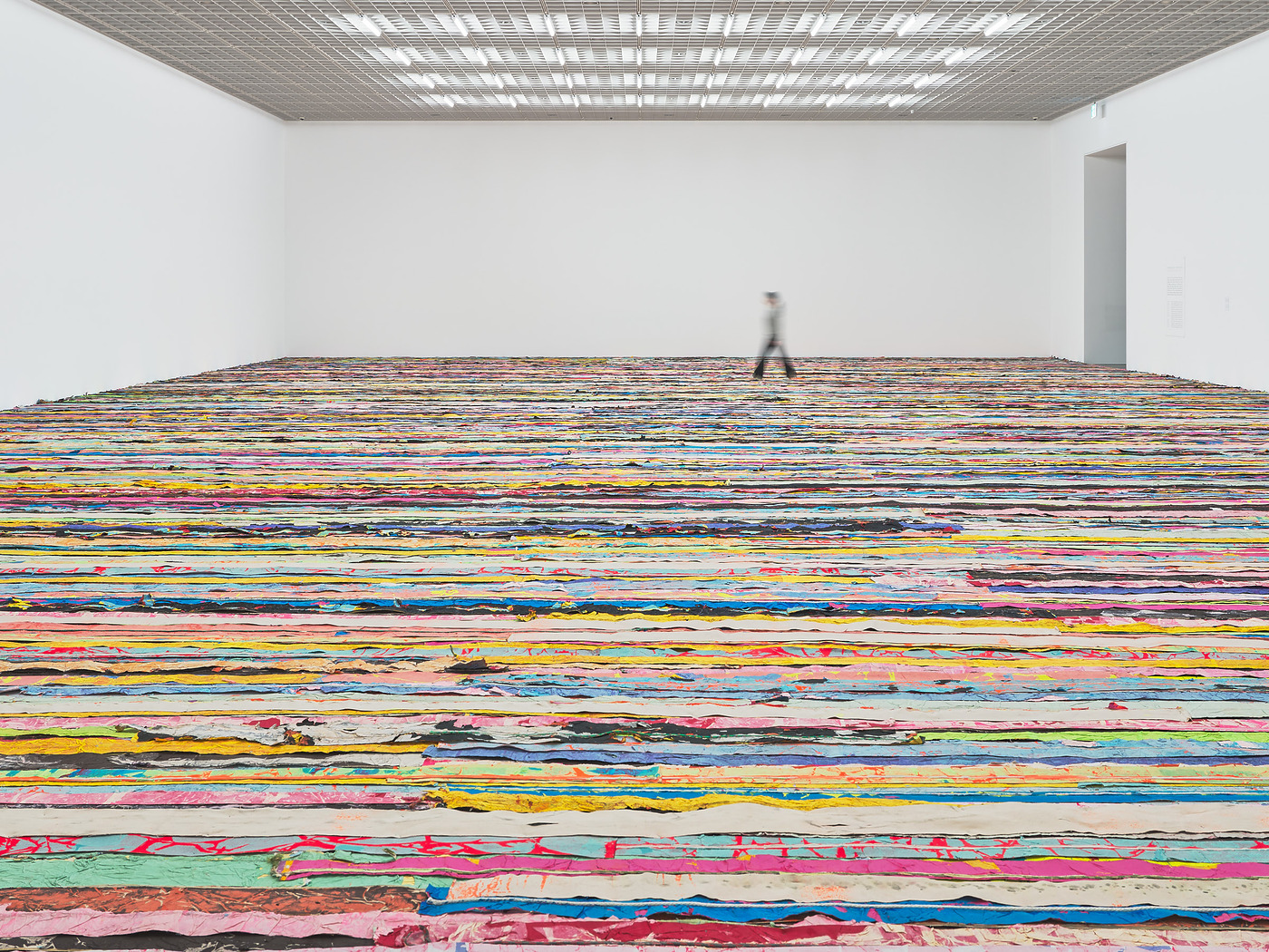 관람객은 작품을 볼 뿐 아니라 그 위를 걸을 수 있고, 이들의 발걸음에