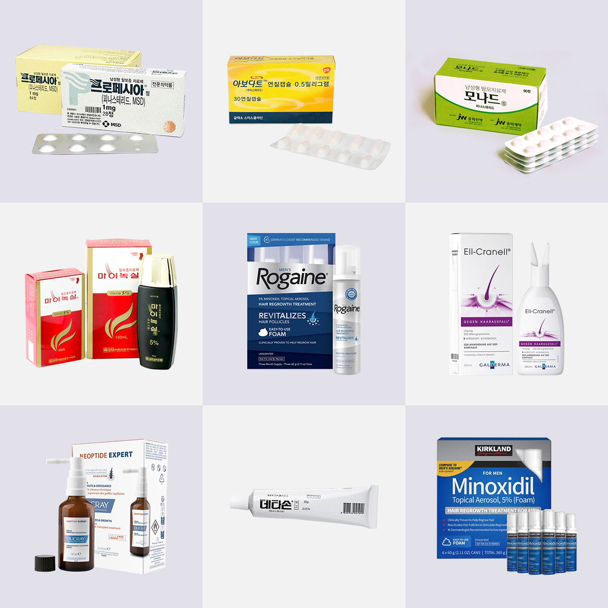 - 클라스코테론: 두피에 바르는 국소용 용액입니다. 두피 표면에서 DHT(디하이드로테스토스테론)가 모낭 수용체에 결합하는 것을 직접 차단합니다.