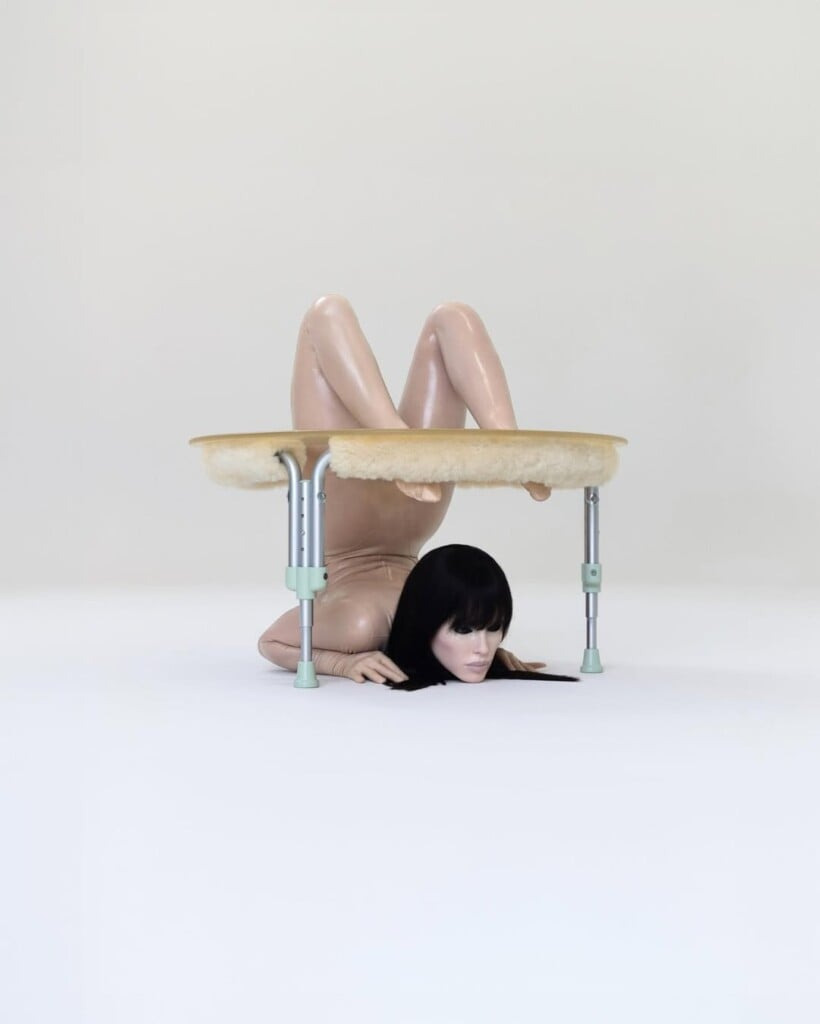 마치 가구처럼 취급되는, 움직이지 않는 나체의 곡예사들입니다.