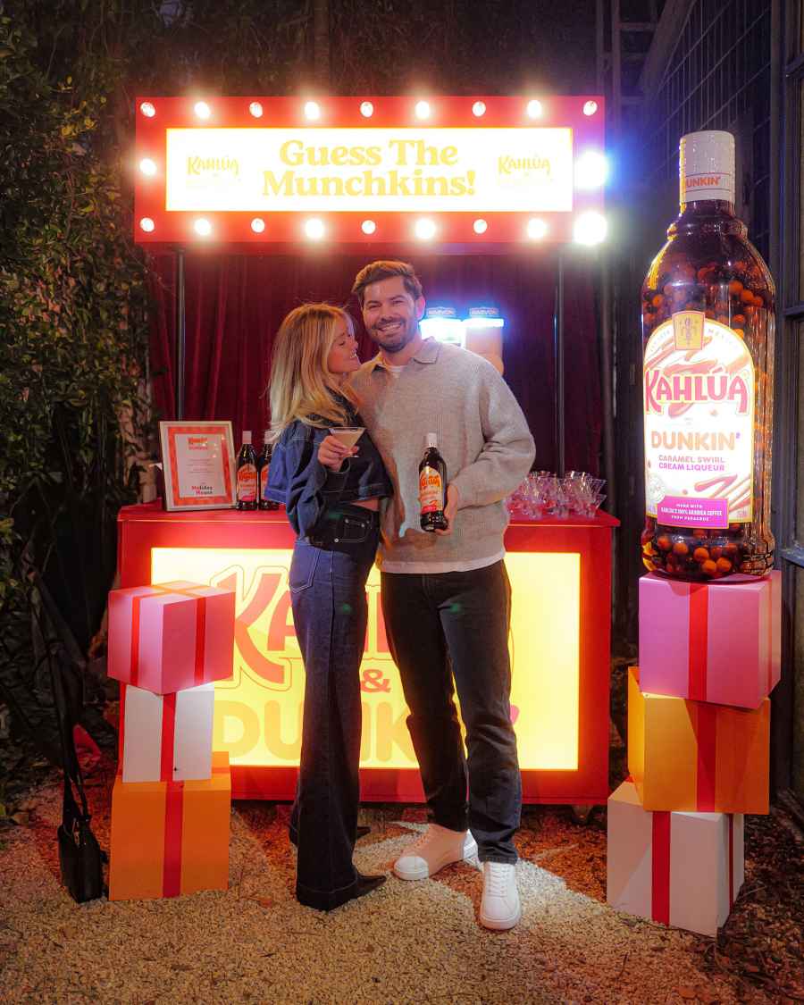 리얼리티 쇼 '배첼러 네이션'에 출연했던 해나 고드윈 과 딜런 바버는 로스앤젤레스에서 열린 체인페스트에서 데이트를 즐기며 던킨의 칼루아 카라멜 스월을 맛보았습니다.