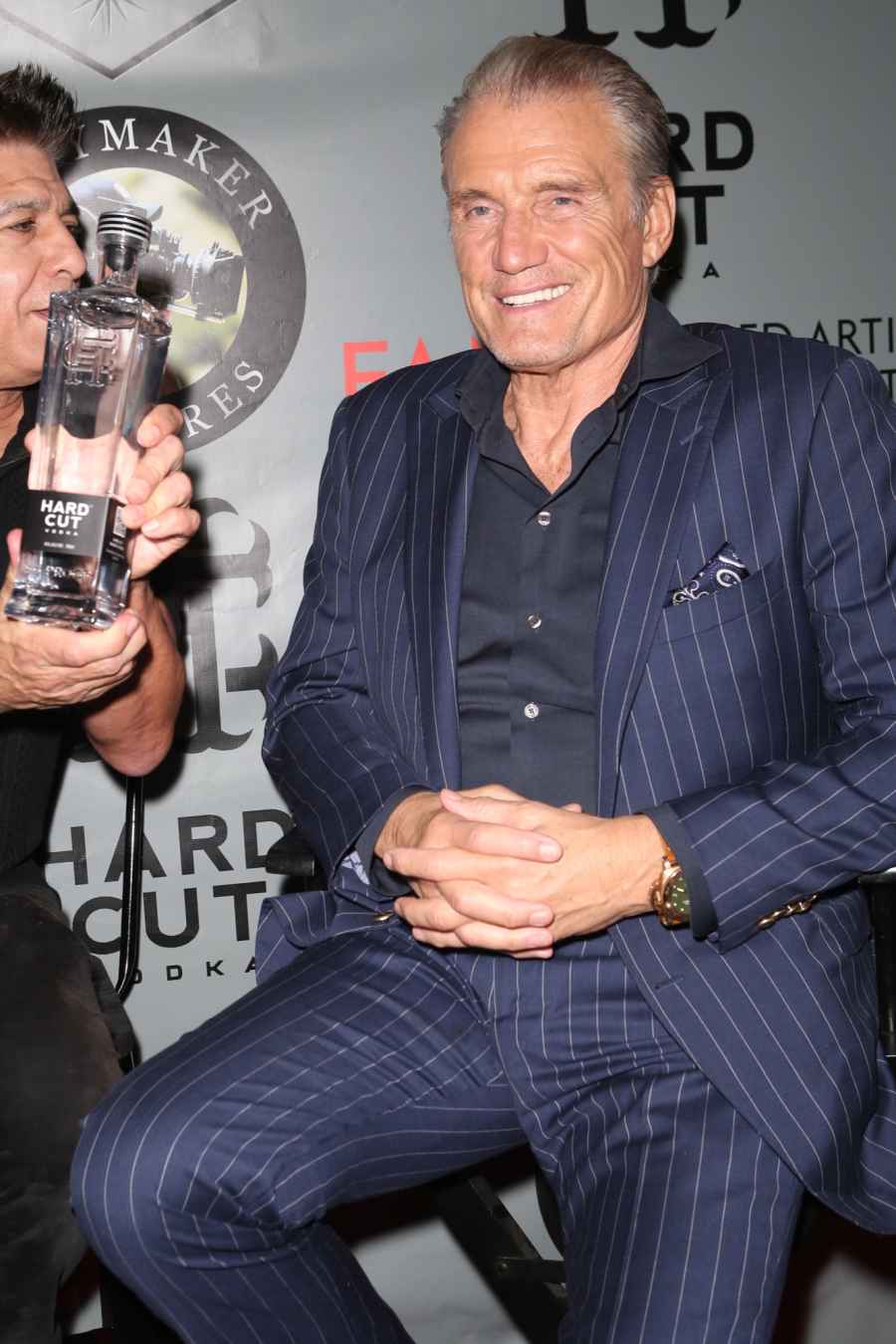 돌프 룬드그렌은 2025년 12월 12일 웨스트 할리우드의 퍼즐에서 열린 추억의 파티에서 자신이 만든 하드컷 보드카를 마시며 축하했습니다.