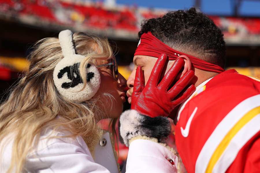 브리타니 마홈스는 2025년 12월 14일 미주리주 캔자스시티에서 열린 캔자스시티 치프스와 로스앤젤레스 차저스의 경기 시작 전 남편 패트릭 마홈스 와 키스를 나누었다
