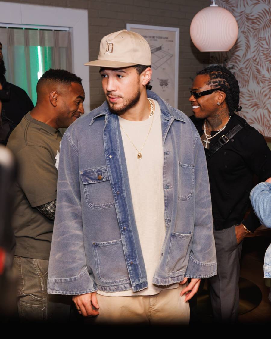 NBA 선수 데빈 부커가 2025년 12월 12일 애리조나주 스코츠데일에서 열린 40 Love의 '가족 및 친구 VIP 오픈 행사'에 참석해 응원을 보냈다.
