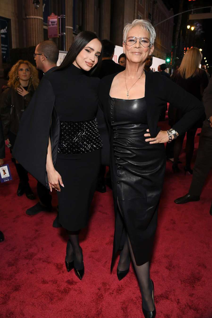소피아 카슨 과 제이미 리 커티스는 2025년 12월 9일 할리우드에서 열린 커티스의 영화 ' 엘라 맥케이 ' 세계 초연에서 올블랙 의상으로 맞춰 입고 등장했다 .
