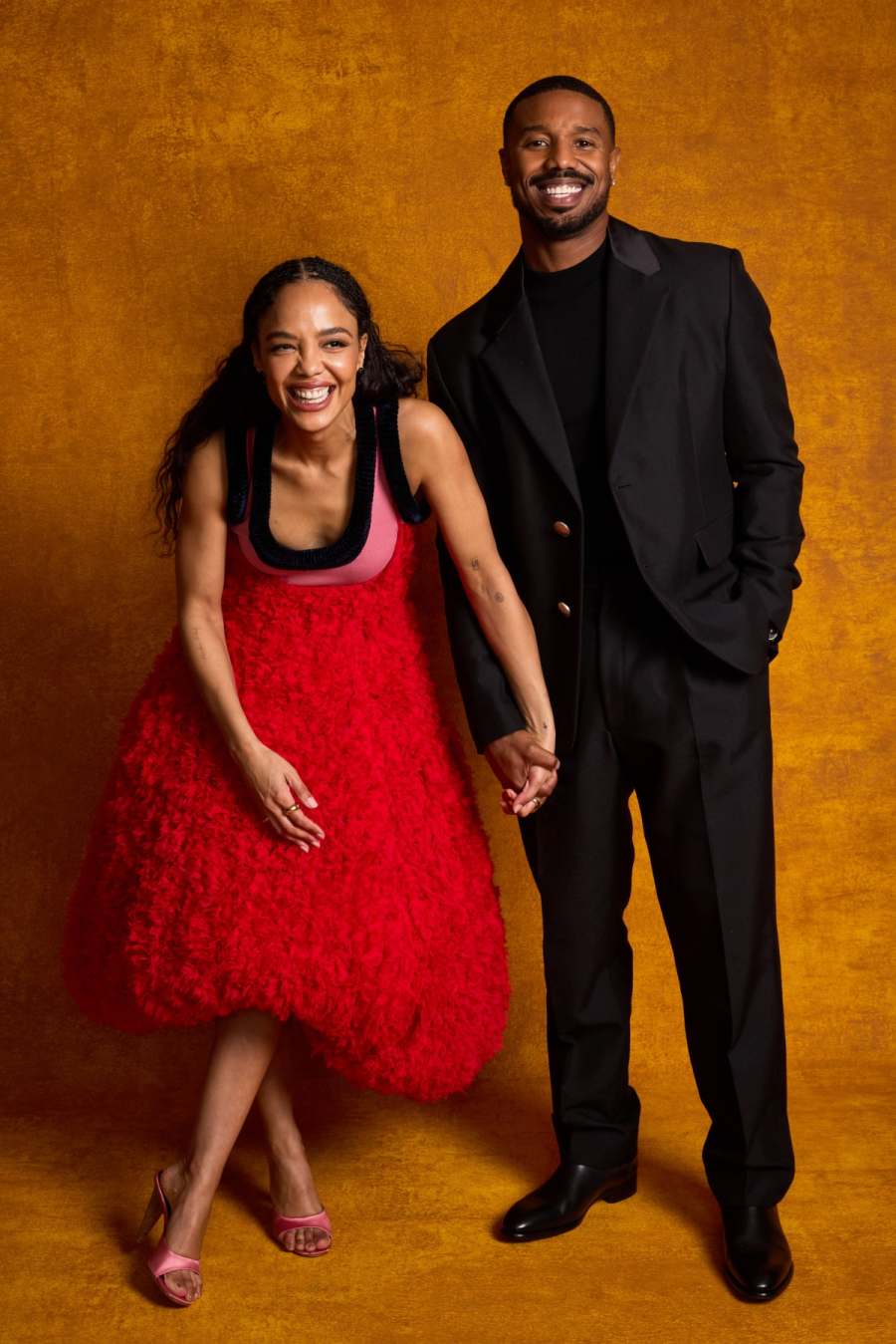 테사 톰슨마이클 B. 조던은 2025년 12월 9일 로스앤젤레스 페어몬트 센추리 플라자에서 열린 제8회 흑인 영화 및 텔레비전 축제(Critics Choice Association 8th Annual Celebration of Black Cinema & Television)의 IMDb 독점 초상화 스튜디오에서 포즈를 취하고 있다.