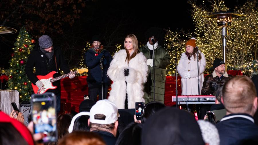 제시카 심슨은 2025년 12월 6일 코네티컷주 마샨터켓에 있는 폭스우즈 리조트 카지노의 연례 크리스마스 트리 점등식 행사에서 무대에 올랐습니다.