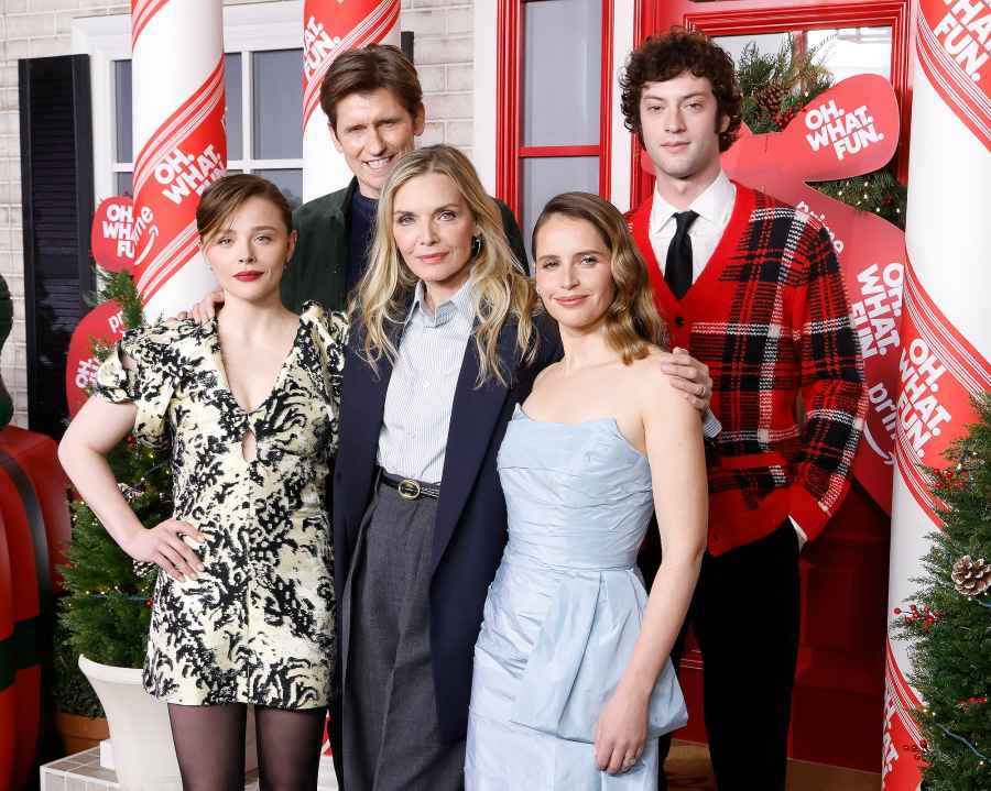 영화 '오, 정말 재밌네!' 에 함께 출연한 클로이 그레이스 모레츠 , 데니스 리어리 , 미셸 파이퍼 , 펠리시티 존스 , 도미닉 세사는 2025년 12월 2일 뉴욕에서 열린 프라임 비디오 영화 시사회에 참석해 최고의 연말연시 의상을 선보였습니다.