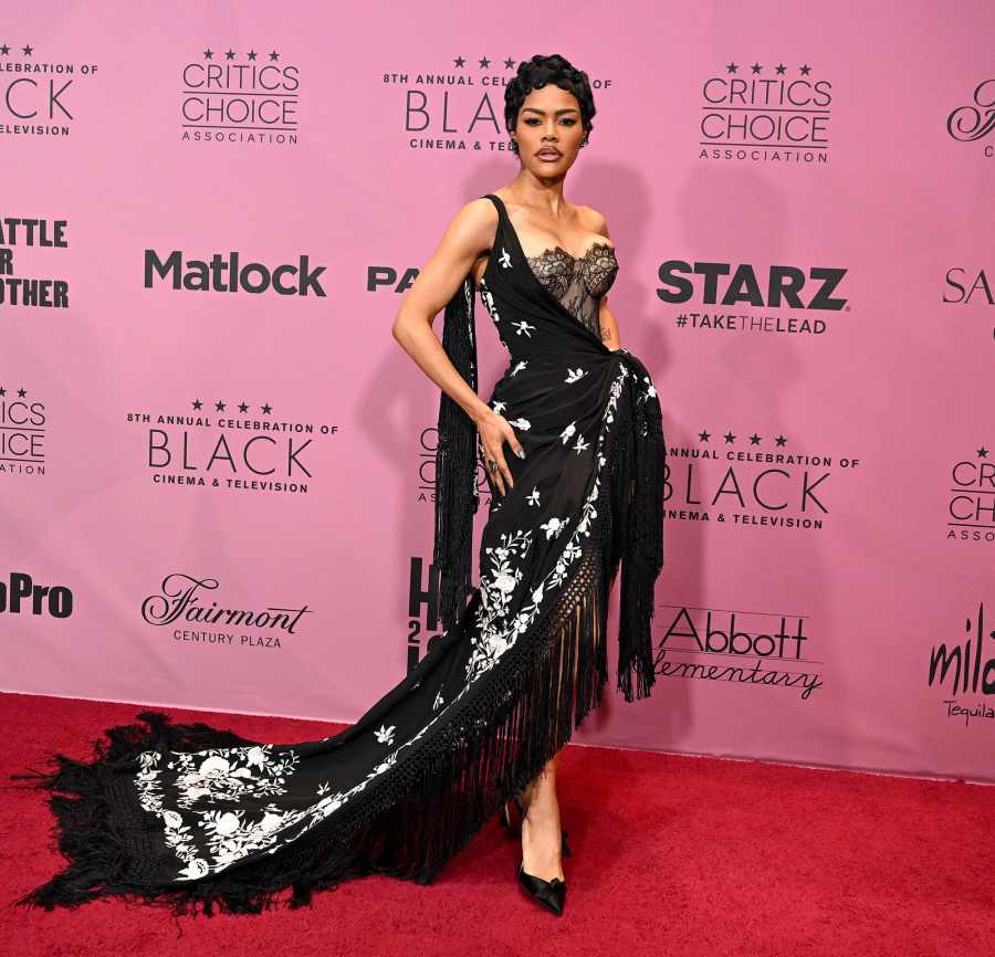 테야나 테일러는 2025년 12월 9일 로스앤젤레스 페어몬트 센추리 플라자 호텔에서 열린 크리틱스 초이스 협회 제8회 흑인 영화 및 텔레비전 기념 행사에서 아름다운 드레스를 뽐냈다.