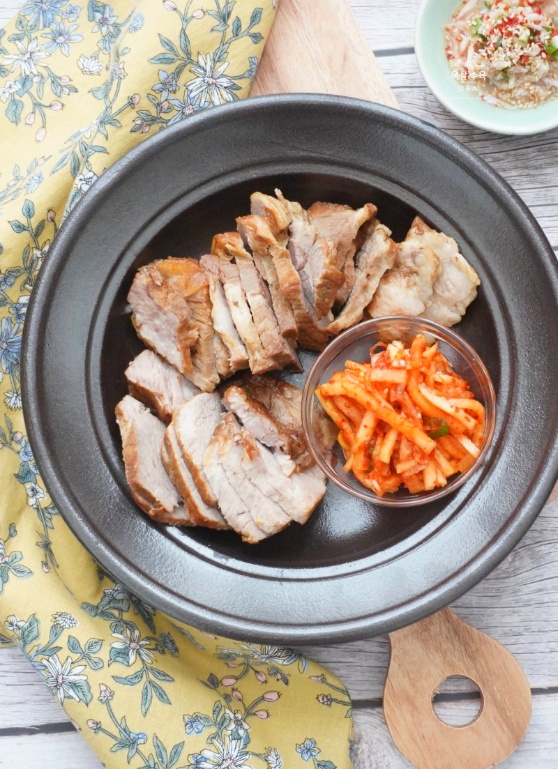 물은 돼지고기가 잠기도록 부어주시면 됩니다.