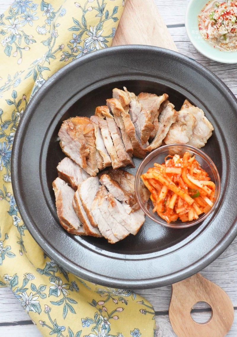 쌈 채소에 싸 먹거나, 얇게 썰어 덮밥으로 만들어도 잘 어울린다.