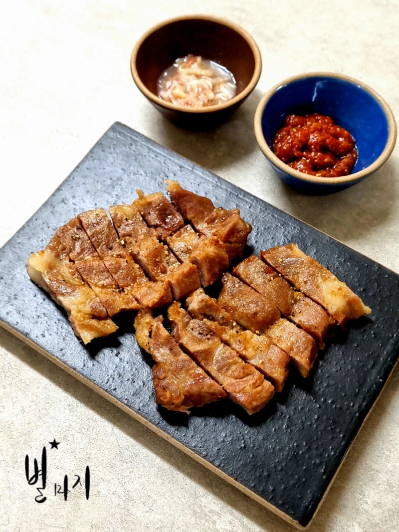 돼지목살은 두툼한 덩어리 상태로 준비하는 것이 좋다.