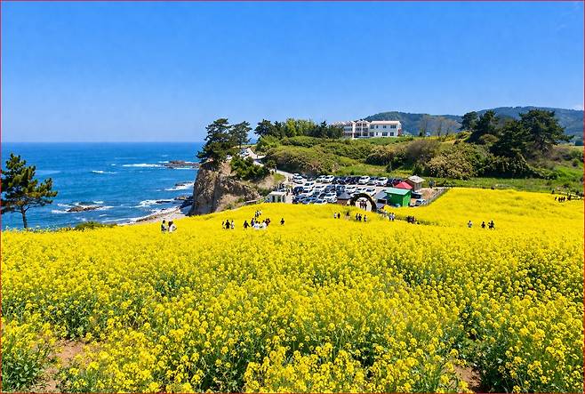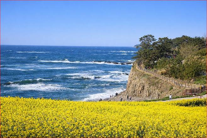 동해바다와 나란히 펼쳐지는 10만 평 유채꽃밭은