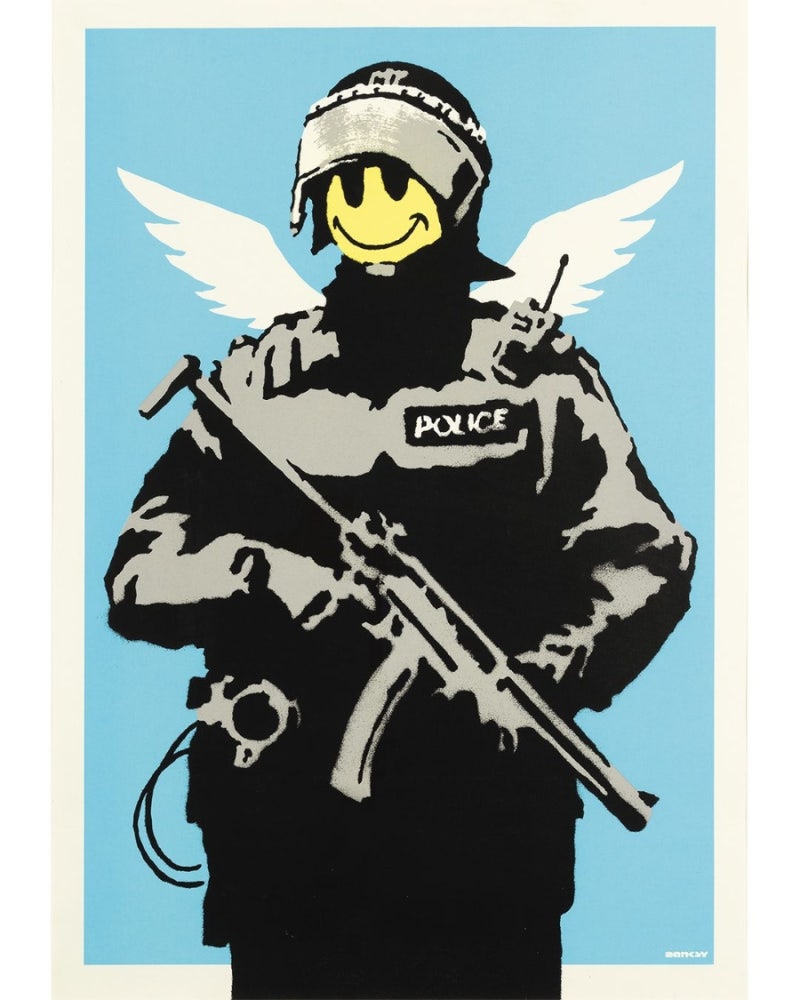 뱅크시는 전쟁, 자본주의, 자유, 감시, 정체성 등 보편적인 문제들을 주제로