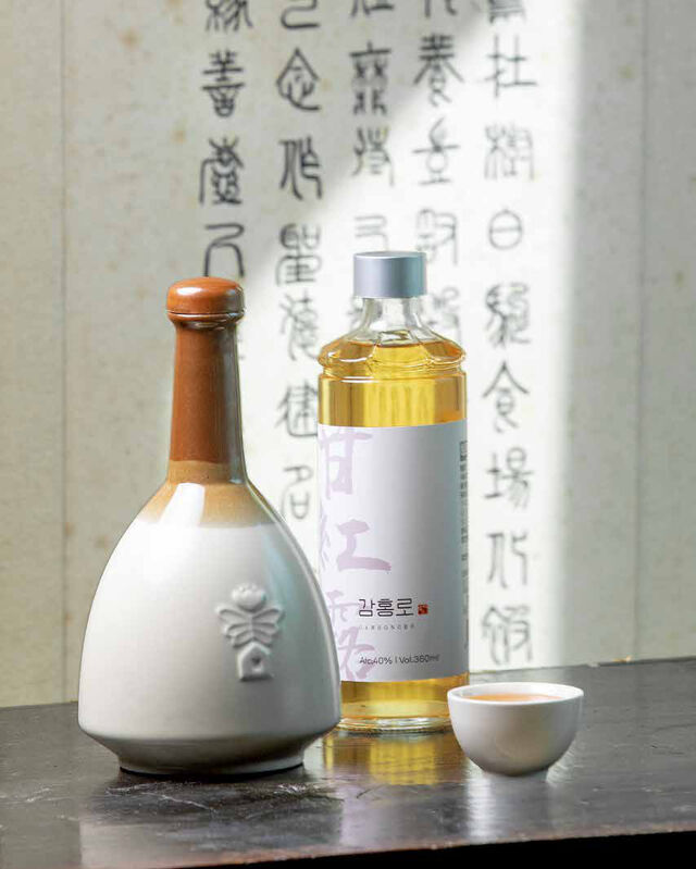 “감홍로를 3분의 1, 따뜻한 물을 3분의 2 비율로 섞으면 도수가 14도 정도로 낮아져요. 피로하거나 잠이 오지 않을 때, 천천히 마시면 몸도 따듯해지고 숙면에도 도움이 돼요.”지난해 그는 감홍로 제조 20주년을 기념해 ‘감홍로 화이트’를 선보였다.